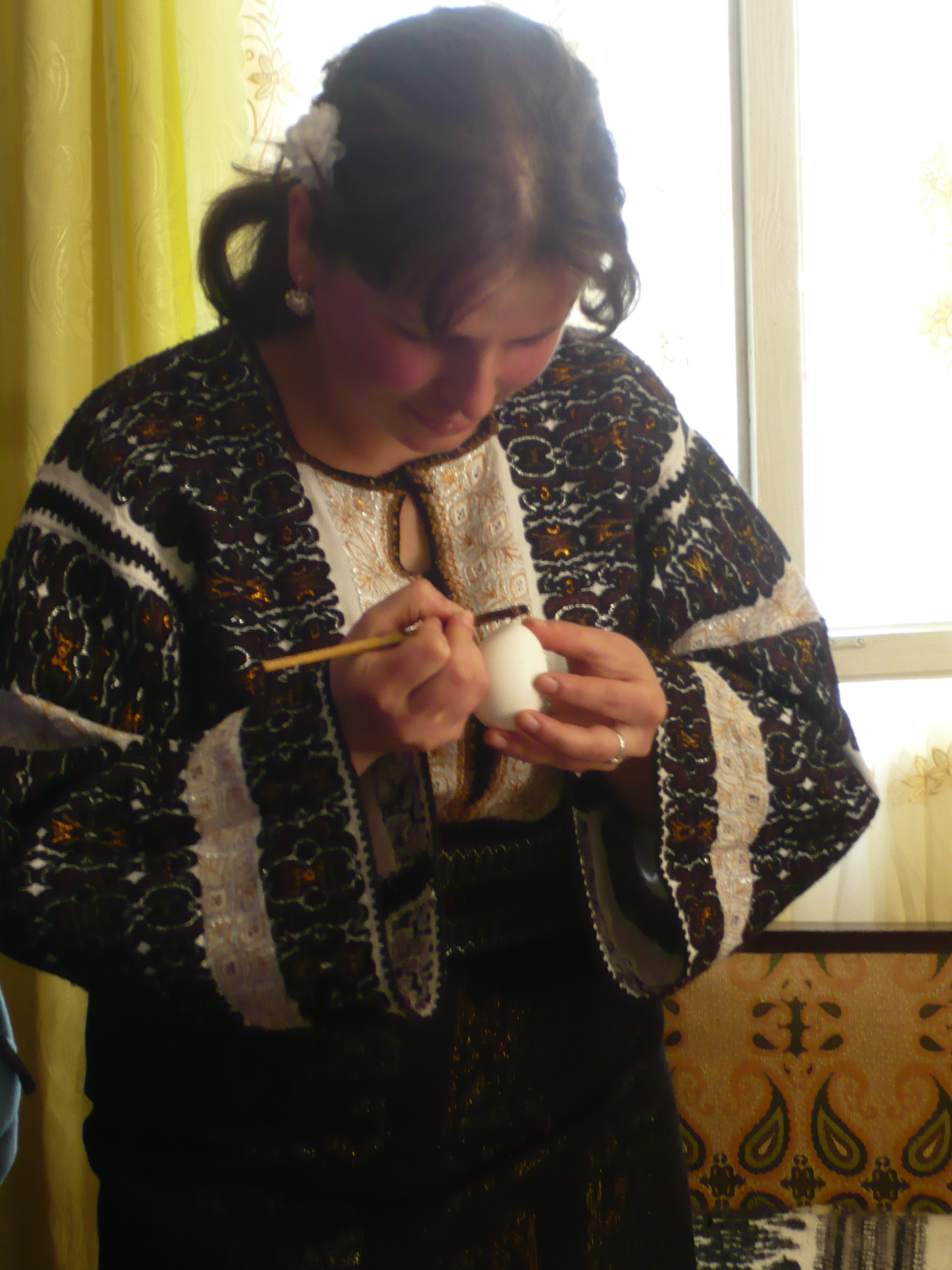 mare pe care trebuia sa o ajute obligat-fortat. Ea ne-a invatat cum sa ne facem de cap cu ceara pentru a face modele pe oua, iar mama sa, Aurelia, ni le-a colorat. Inca o data ni s-a aratat cat de prietenosi sunt oamenii din aceste regiuni.