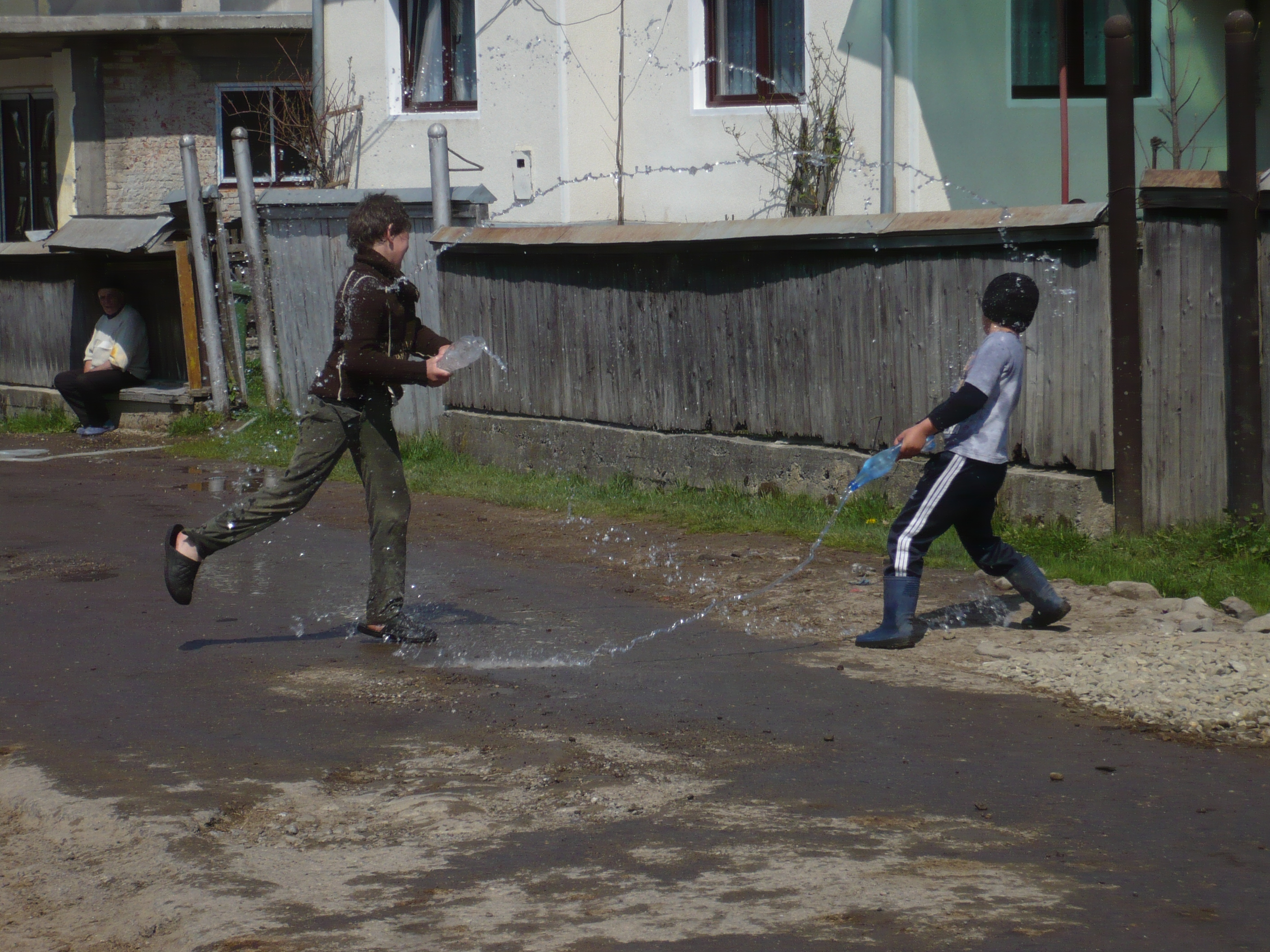 Bataia cu apa a copiilor din satul Bogdan Voda – Salistea de Sus, o traditie a locului de Sfantul Gheorghe, mi-a adus in fata ochilor ciopilaria “zbuciumata” de care am avut parte, in special de vacantele de vara, cand o sticla de apa ce avea puterea de a se reumple in 2 timpi si 3 miscari facea victime in fata blocului unde am crescut. Mi-au dat o energie de care m-am bucurat intreaga zi.