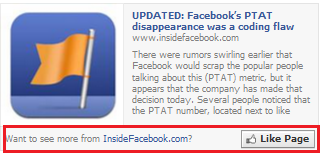 5. Postezi pe wall-ul tau un articol de pe un site care are si Facebook Page? Minunat! Va avea sub el un buton LIKE Page.